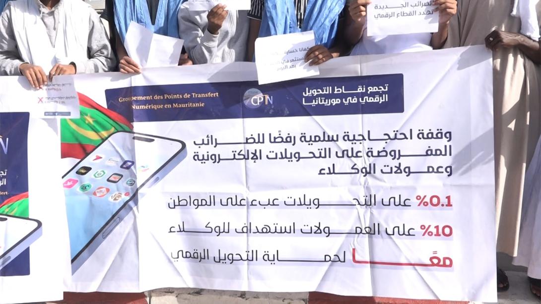 (المرابطون Tv) نظم عدد من أعضاء تجمع نقاط التحويل الرقمي، اليوم الجمعة وقفة احتجاجية أمام القصر الرئاسي تعبيرا عن رفض الضريبة الجديدة على التحويلات الرقمية