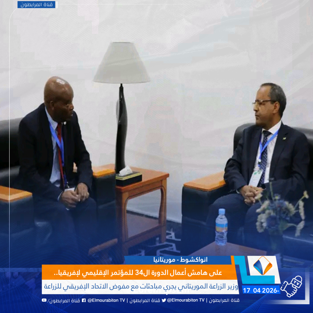 (المرابطون Tv) أجرى وزير الزراعة والسيادة الغذائية، محمدو أحمدو أمحيميد، مباحثات مع مفوض الاتحاد الإفريقي للزراعة والتنمية الريفية والاقتصاد الأزرق والبيئة المستدامة، موزيس فيلاكاتي على هامش أعمال الدورة ال34 للمؤتمر الإقليمي لإفريقيا (ARC34)