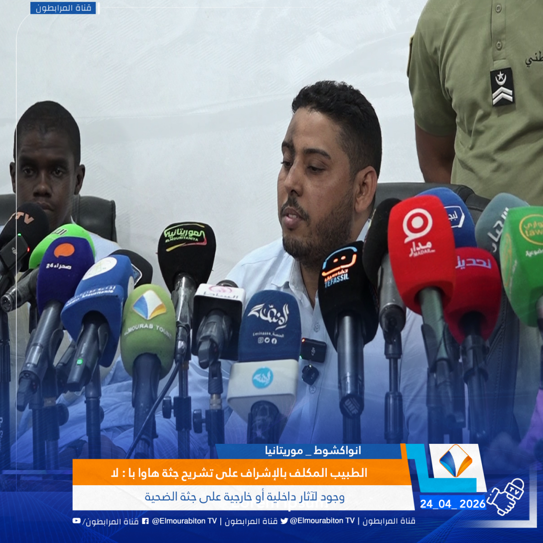 (المرابطون Tv) أكد الطبيب المكلف بالإشراف على تشريح جثة "هاوا با"، أن عملية تشريح جثة الضحية في المستشفى الوطني، أكدت "عدم وجود أي إصابات خارجية أو داخلية أو آثار عنف على الجثة".