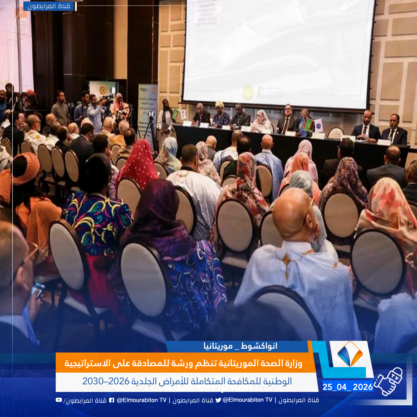(المرابطون Tv) نطلقت مساء الجمعة أعمال الورشة الخاصة بالمصادقة الرسمية على الاستراتيجية الوطنية للمكافحة المتكاملة للأمراض الجلدية 2026–2030، التي نظمها البرنامج الوطني للتكفل بالأمراض الجلدية، بالتعاون مع منظمة الصحة العالمية.