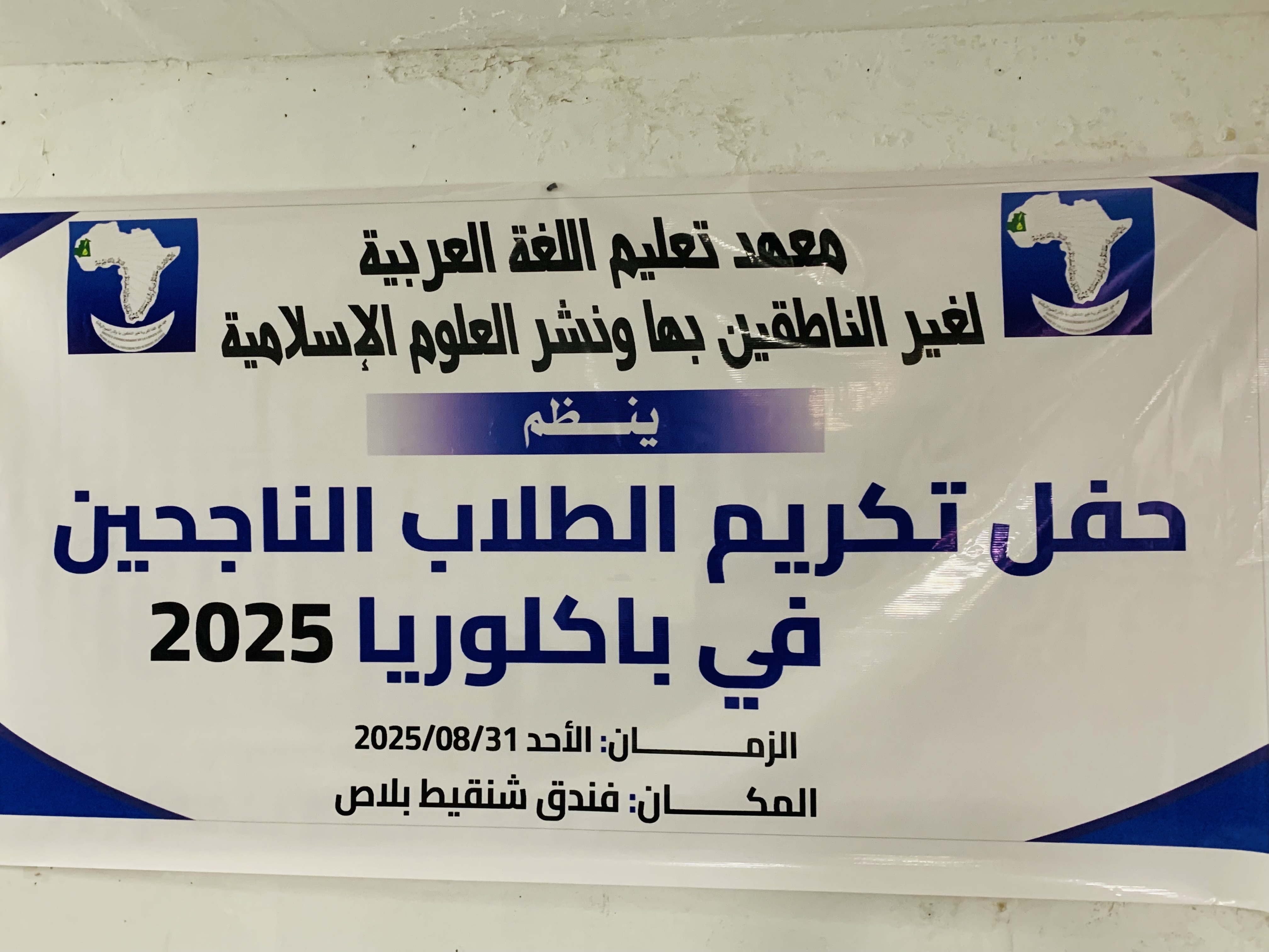نظم معهد تعليم اللغة العربية لغير الناطقين بها ونشر العلوم الإسلامية اليوم الأحد بفندق شنقيط بلاس في نواكشوط، حفلاً لتكريم الطلاب الناجحين في شهادة الباكالوريا للعام الدراسي 2025.