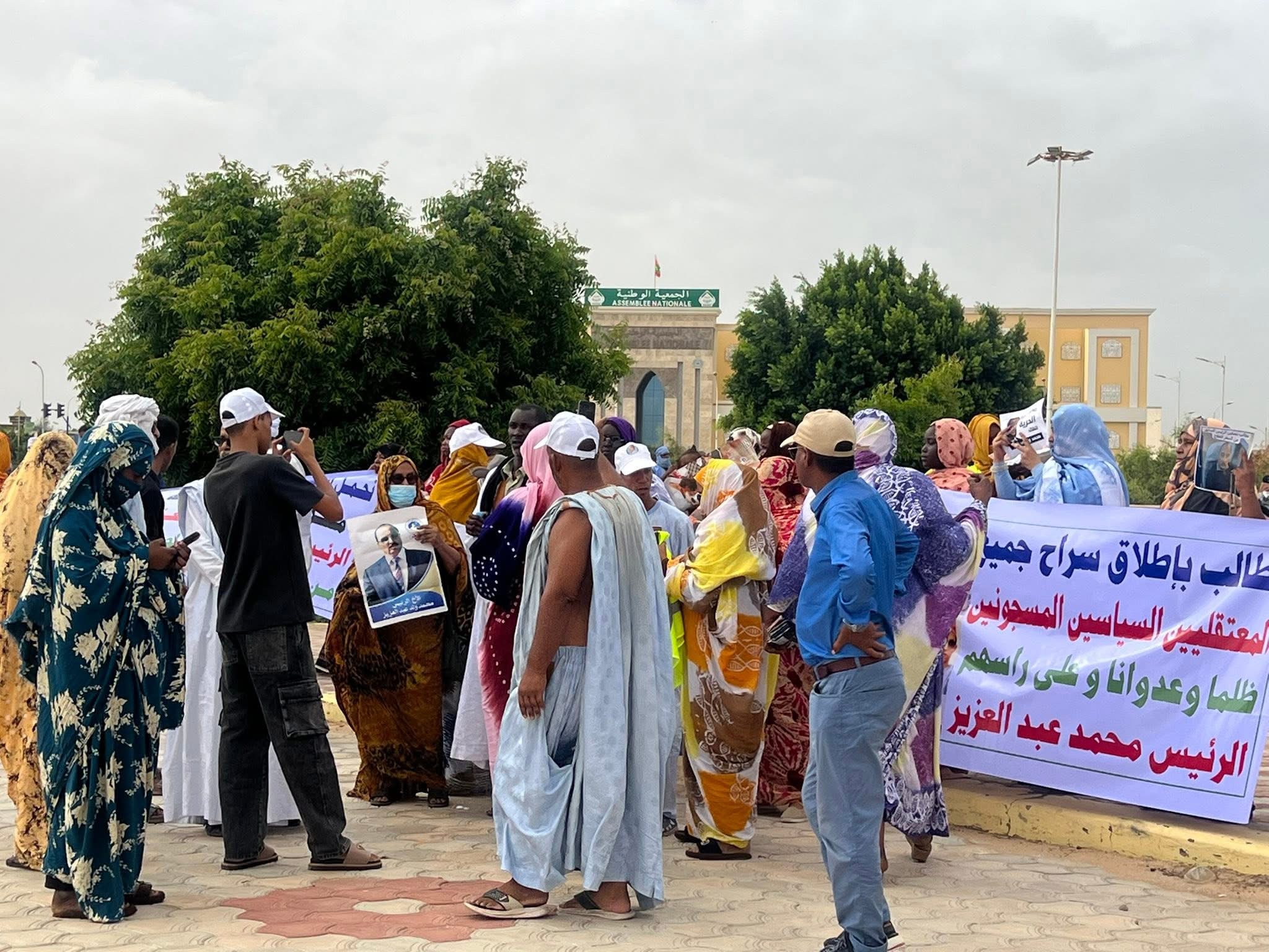 نظمت مجموعة من النساء الناشطات صباح اليوم في نواكشوط وقفة احتجاجية طالبن خلالها بالإفراج عن الرئيس السابق محمد ولد عبد العزيز، مبررات مطلبهن بالظروف الصحية التي يمر بها.
