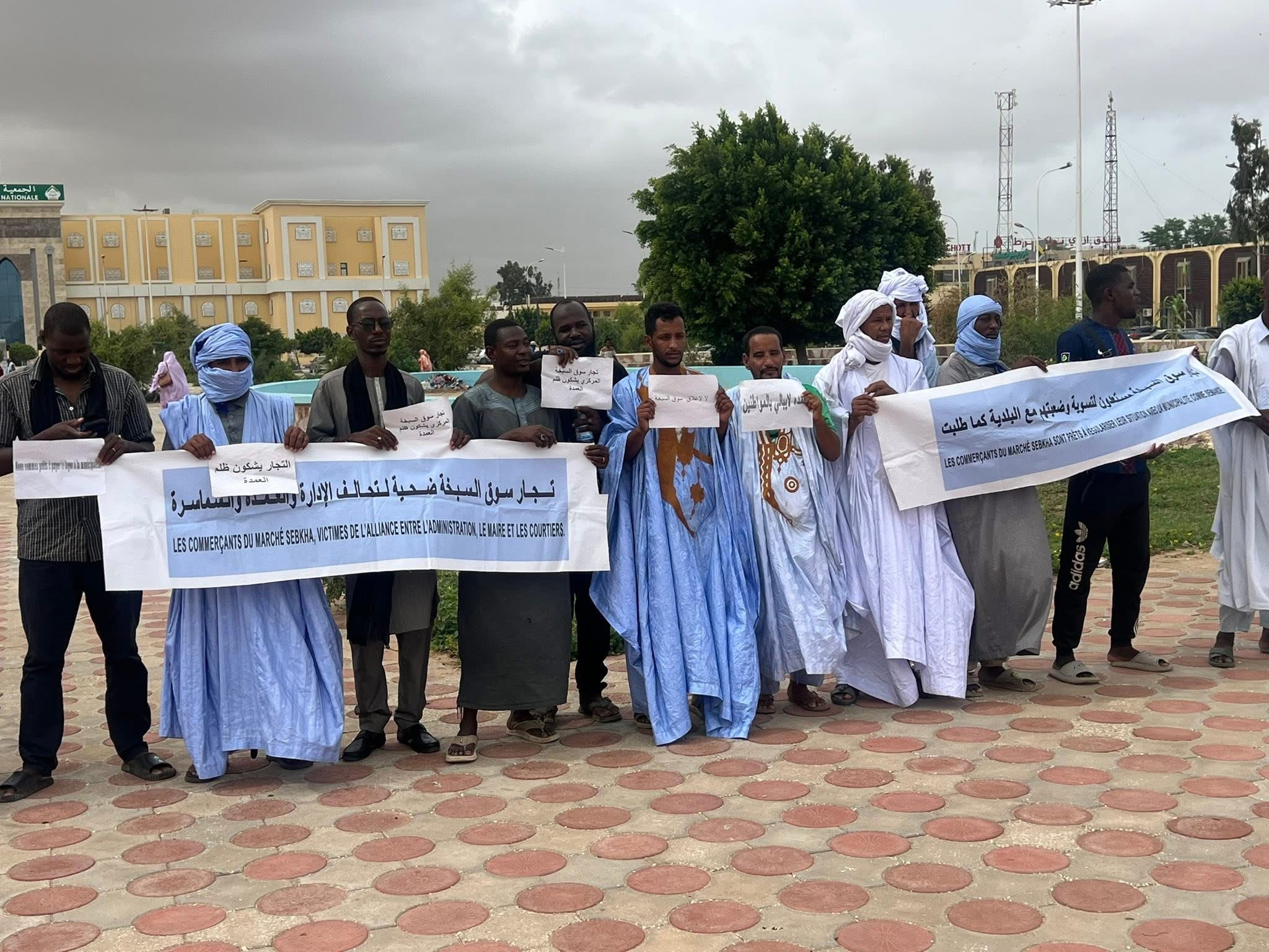جدد عدد من تجار سوق السبخة اليوم وقفاتهم الاحتجاجية في ساحة الحرية وسط نواكشوط، مطالبين بحل عاجل لقضيتهم بعد ما قالوا إنه استيلاء من طرف البلدية على محلاتهم التجارية وطردهم منها.