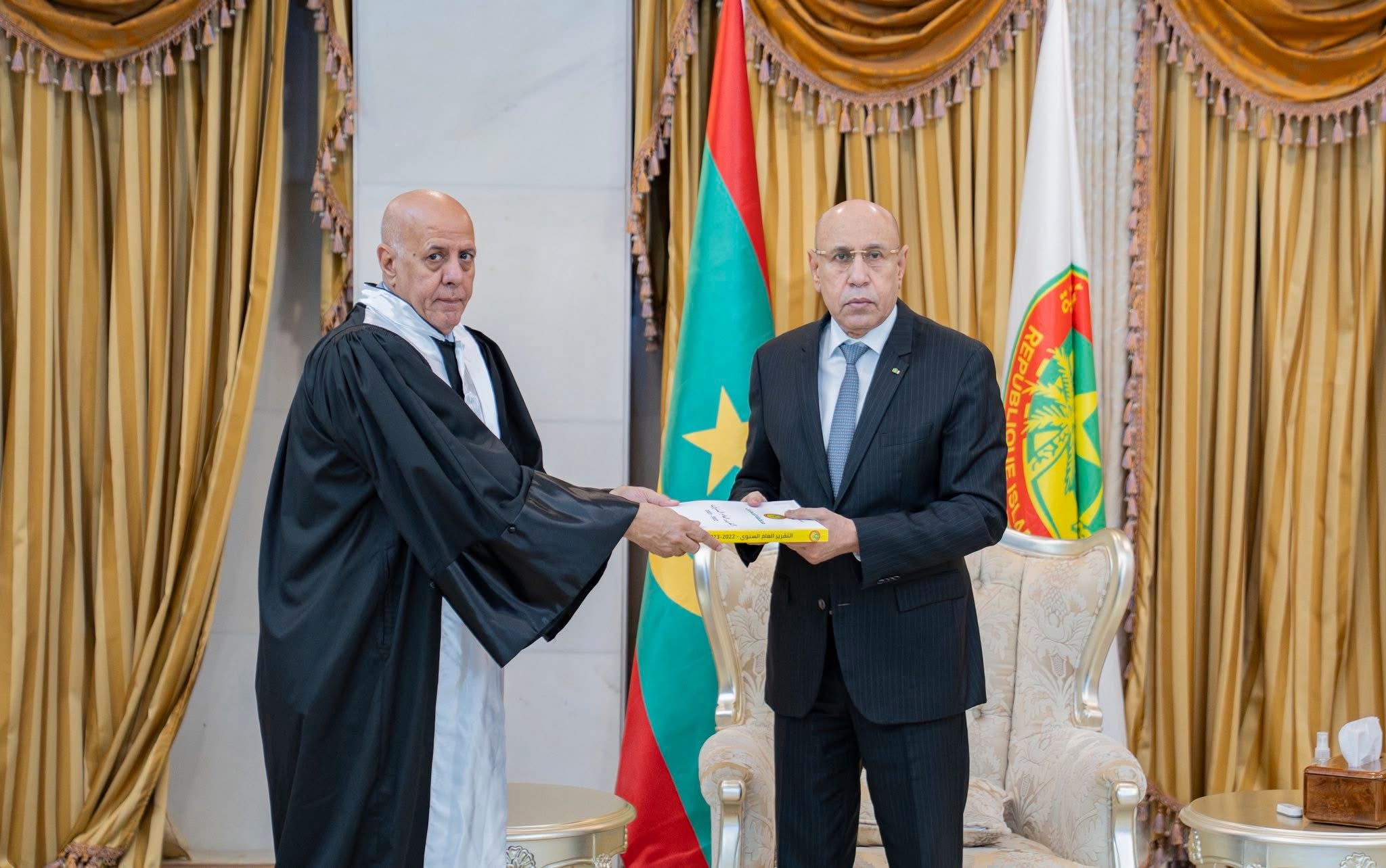 تسلم الرئيس محمد ولد الشيخ الغزواني صباح الأربعاء في القصر الرئاسي بنواكشوط التقرير السنوي العام لمحكمة الحسابات من رئيس المحكمة حميد ولد أحمد طالب.