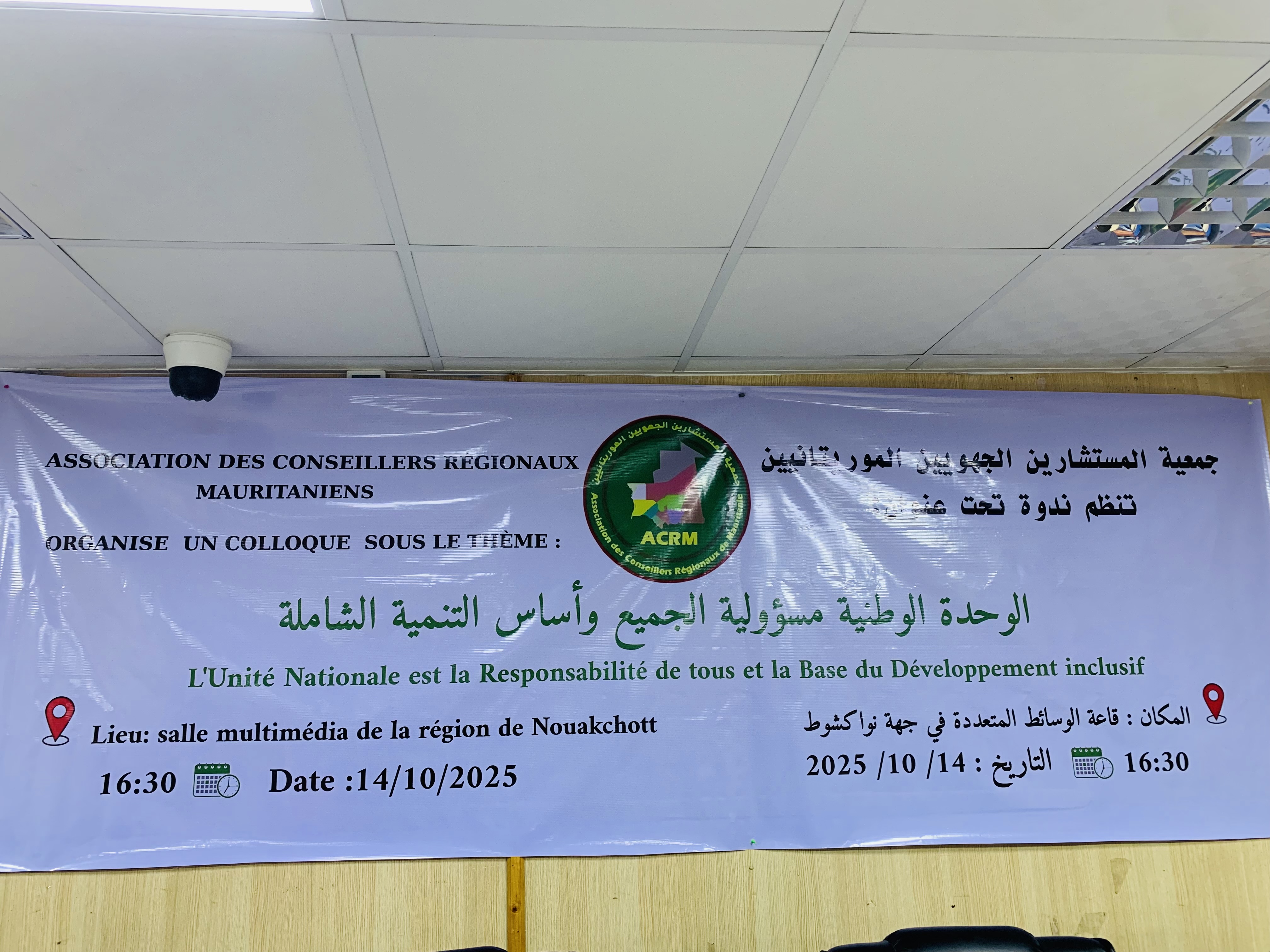نواكشوط – احتضنت قاعة الوسائط المتعددة في جهة نواكشوط اليوم ندوة نظمّتها جمعية المستشارين الجهويين الموريتانيين تحت عنوان «الوحدة الوطنية مسؤولية الجميع وأساس التنمية الشاملة».