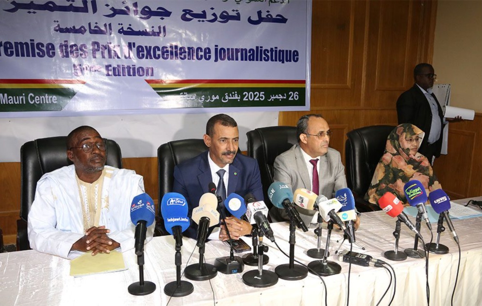 (المرابطون Tv) نظمت اللجنة المكلفة بتسيير وتوزيع صندوق الدعم العمومي لوسائل الاتصال اليوم الجمعة بالعاصمة انواكشوط حفل توزيع جوائز النسخة الخامسة من مسابقة التميز الصحفي بحضور وزير الثقافة والفنون والاتصال الناطق باسم الحكومة الحسين ولد مدو