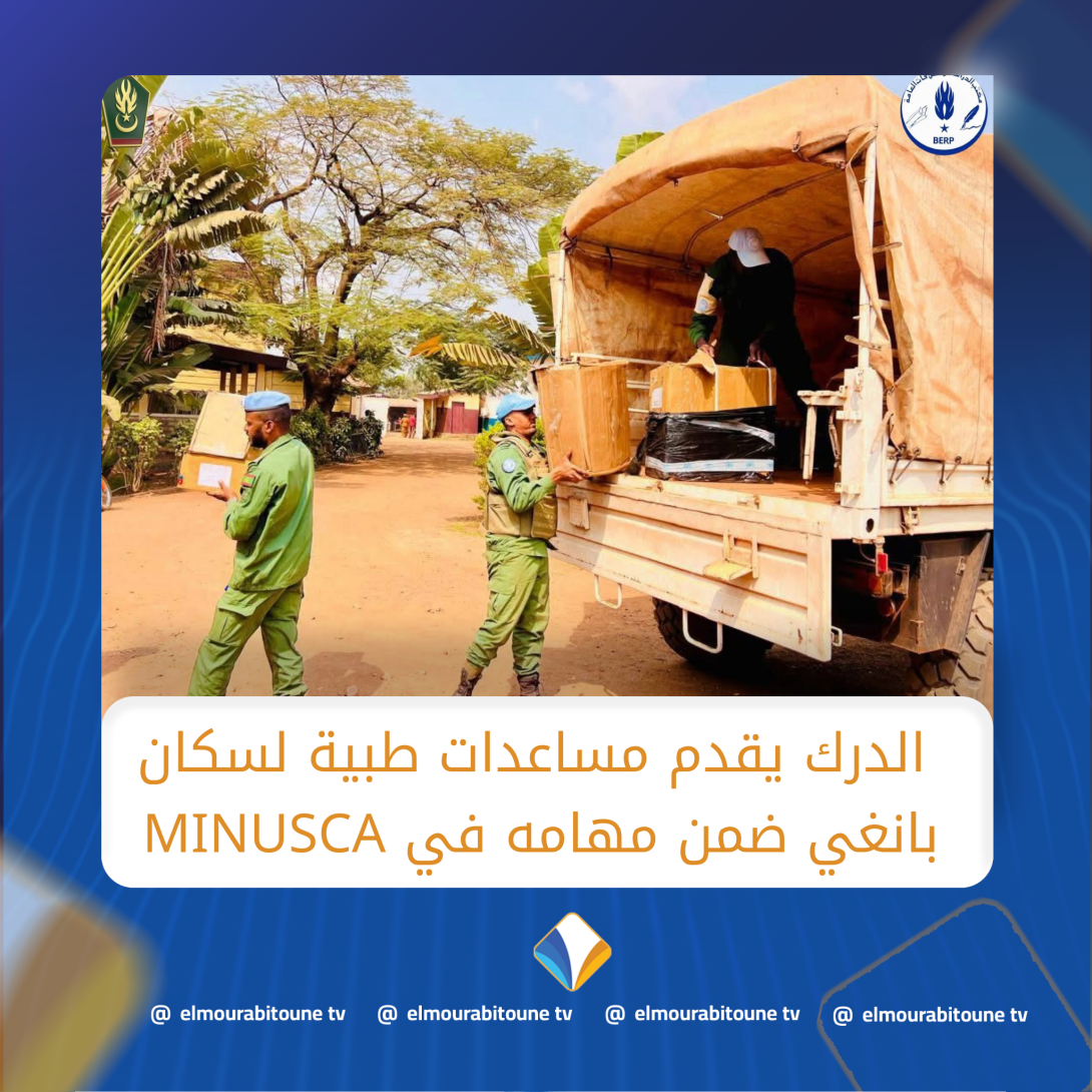 قدّمت وحدة الدرك الوطني الموريتاني، العاملة ضمن بعثة الأمم المتحدة المتكاملة متعددة الأبعاد لتحقيق الاستقرار في جمهورية أفريقيا الوسطى (MINUSCA)، تبرعا من الأدوية لمركز الصحة الحضرية “كاستور” في الدائرة الثالثة من العاصمة بانغي.