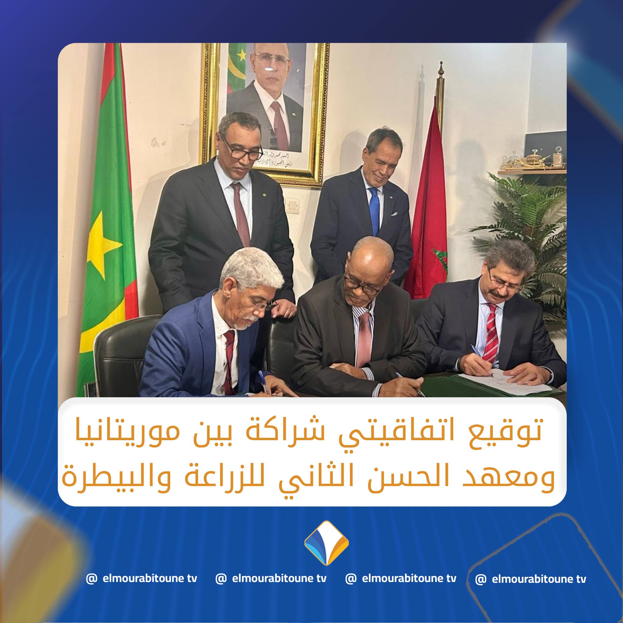 وقّعت وزارة التعليم العالي والبحث العلمي الموريتانية، اليوم الخميس في نواكشوط، اتفاقيتي شراكة مع معهد الحسن الثاني للزراعة والبيطرة المغربي، في إطار تعزيز التعاون الأكاديمي وتطوير التكوين العالي المتخصص في المجالات الزراعية والبيطرية.