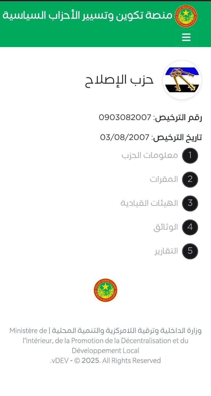 (المرابطون Tv) أعلن حزب الإصلاح الموريتاني مساء أمس السبت عن اكتمال إدخال بياناته المطلوبة وفق القانون الجديد المنظم للاحزاب السياسية عبر منصة وزارة الداخلية
